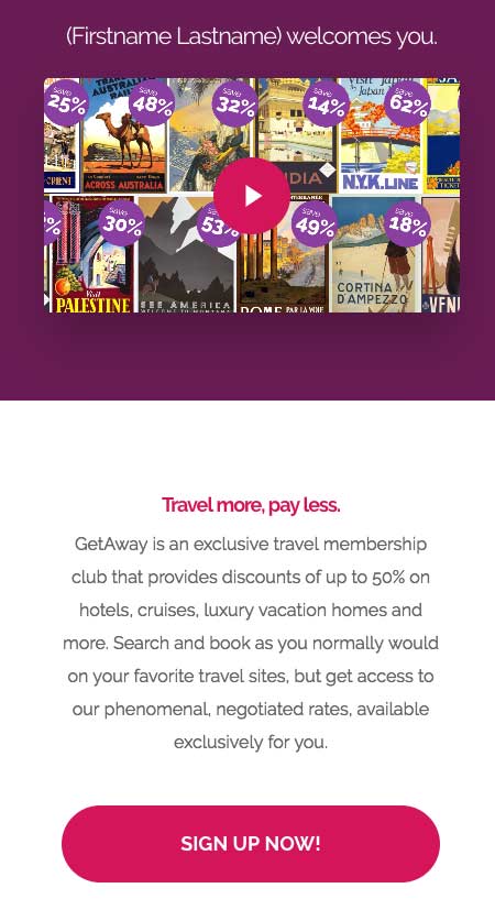 LINKS TO FULL ENROLLMENT. Use these links to share GetAway with your prospects. These links go to a page with the video, a brief description of the product, a lead capture page and an enrollment link. This is a great follow-up tool, a pique interest tool, or a direct link for someone interested in one specific service.